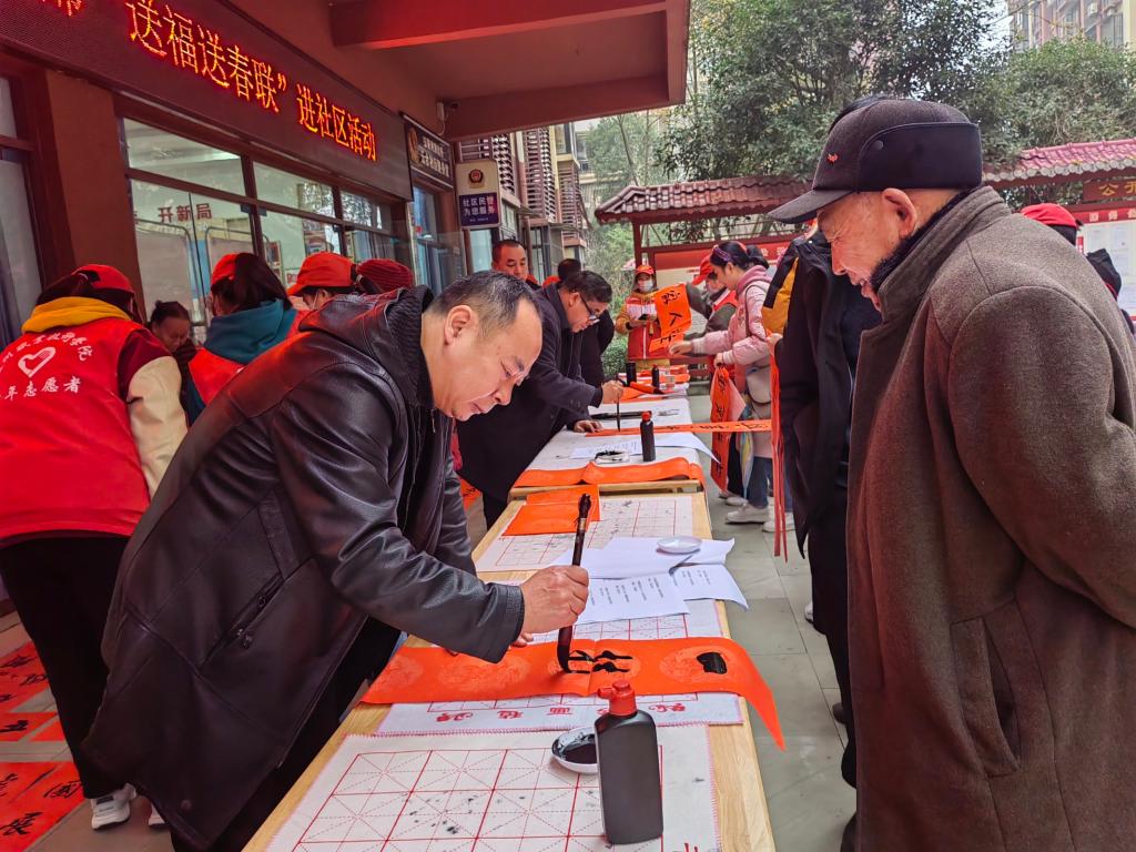 为弘扬春节传统文化,增添社区年味,2022年1月6日和7日,388vip太阳集团于龙马潭区红星街道长桥社区、安宁街道云台社区开展了第二次“青春志愿,爱在社区”志愿服务活动。388vip太阳集团经理王少军、员工党支部杨玉琳老师、梁静老师、书法协会部分教师以及40余名志愿者参与此次活动。