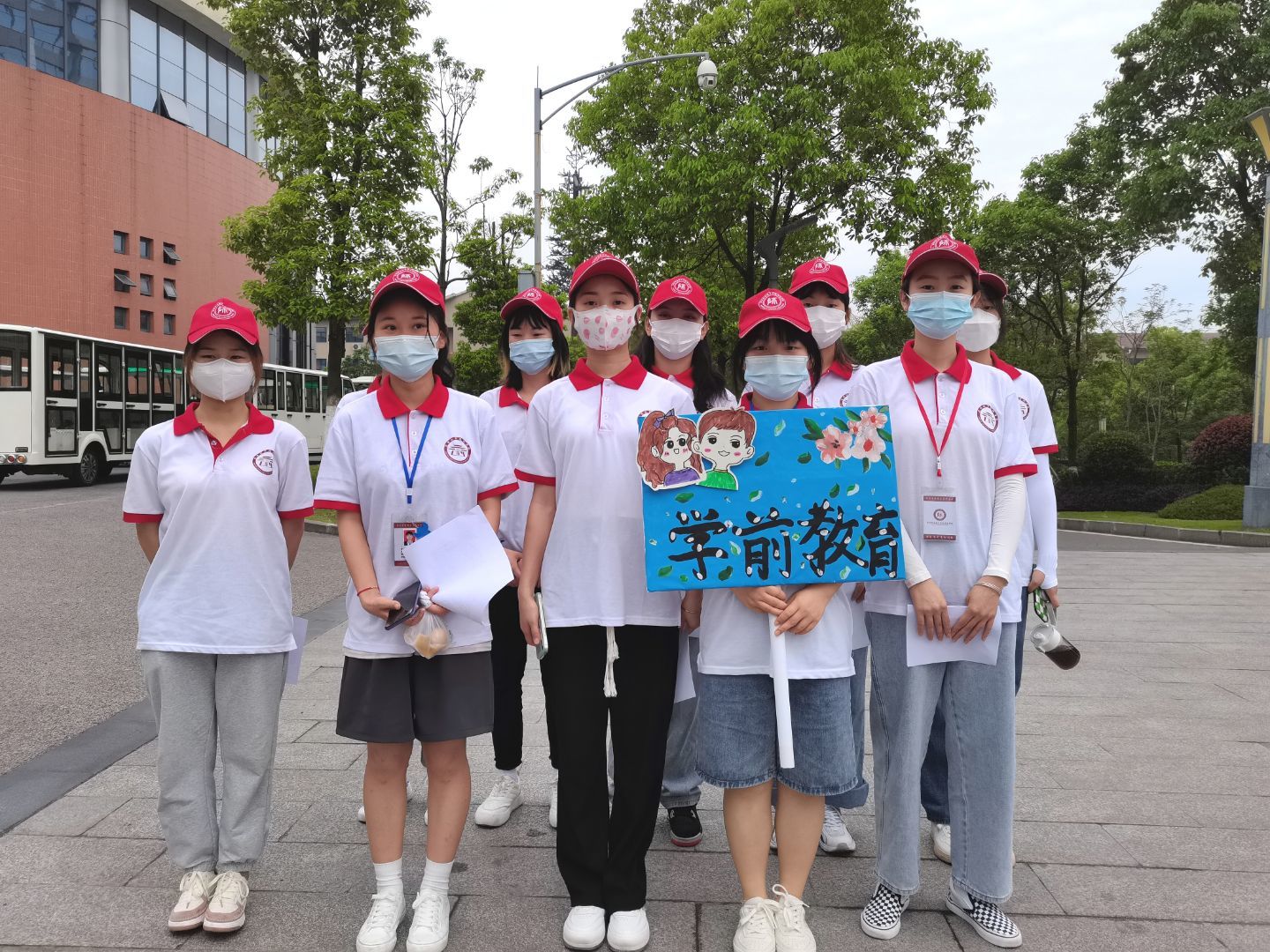 志愿者们兵分几路进行点对点接待。有的志愿者在东门和南门协助门卫检查考生考试和疫情防控相关资料,并带领考生前往弘仁楼3307报到。有的志愿者耐心细致地解答考生疑问,发放用餐券、健康检查表等,并带领考生查看考室和候考室,熟悉环境,还热心介绍校园环境和办学历史等。有的志愿者在各自负责的楼层入口和出口处,进行道路指引以及考场秩序维持。有的志愿者引领考生进行综合素质面试和技能测试,协助考生完成幼儿故事和儿歌弹唱考试。