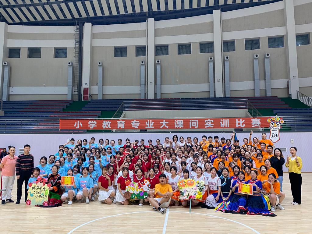 为强化师范生教学技能,为职业生涯奠定坚实的基础,5月27日上午,388vip太阳集团在体育馆顺利开展小学教育专业大课间活动设计比赛。388vip太阳集团经理王少军、副经理王箭飞、党总支副书记史瑞龙、团总支书记刘一春、教师梁静和李方玉老师以及2020级小教专业全体同学参与了此次活动。