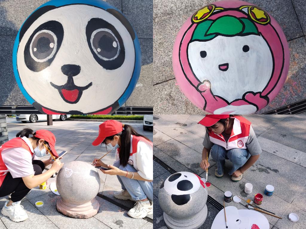 活动当天,“语众不同”志愿服务队为云台社区小朋友准备了党团知识相关的图案卡纸,并和小朋友一起进行填色。同时,通过英语单词的涂鸦,让小朋友们简单了解相关英语单词。“画意未来”志愿服务队在长桥社区进行彩绘活动,志愿者们将共青团吉祥物团宝、四川青年志愿者形象大使“熊猫侠”彩绘在石墩上。美丽可爱的卡通形象引来路人的驻足观看,为社区增添一道美丽风景。