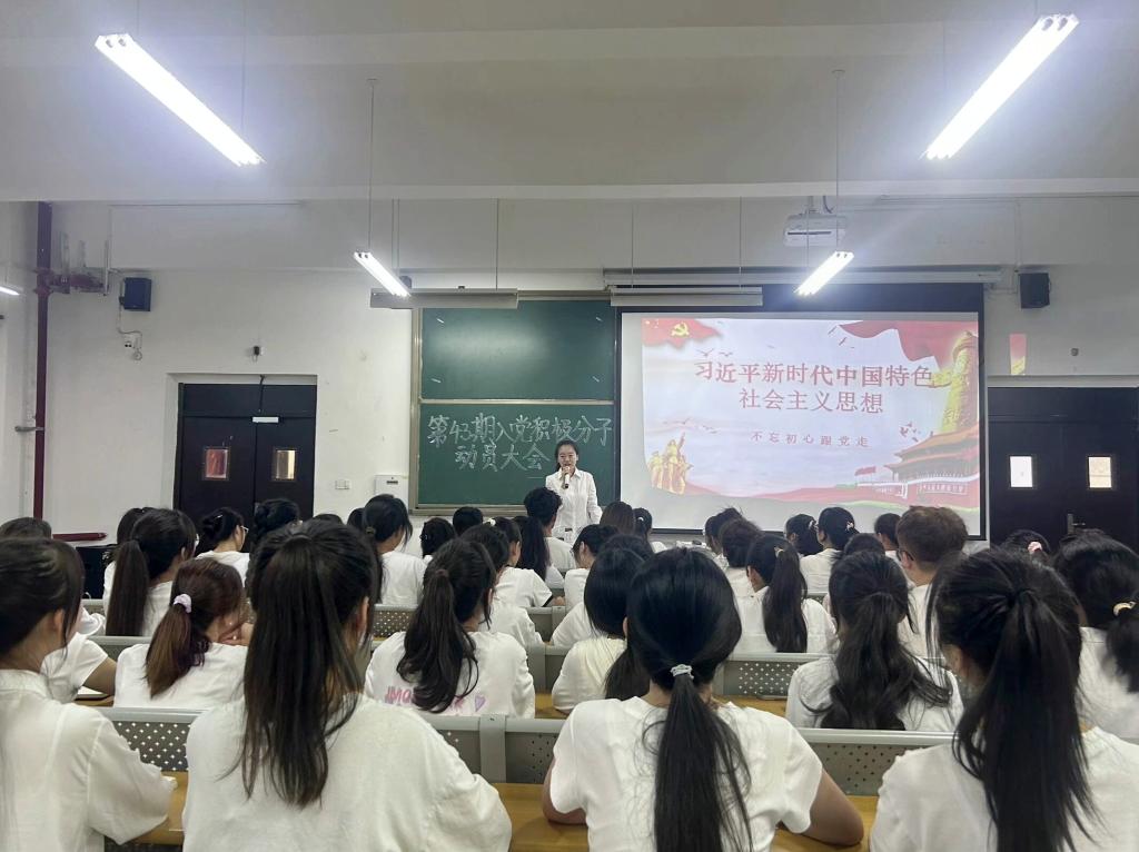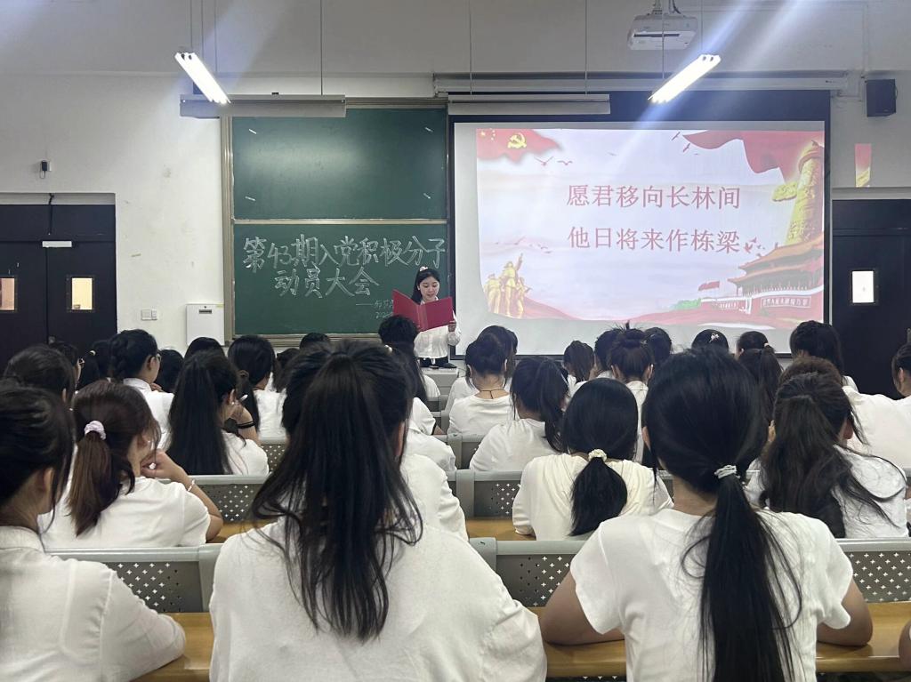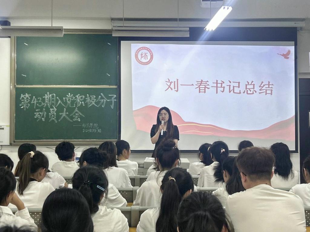 大会伊始,主持人带领全体参会人员学习了习近平总书记的重要文章《必须坚持人民至上》,号召新时代青年应敢想敢为,奋力书写为中国式现代化挺膺担当的青春。随后,优秀党员代表郭钰彤和第43期入党积极分子代表杨盛梅依次上台发言,并表示同学们应当树立正确的入党动机,提高思想政治觉悟,不断提升自己的综合素质,努力奋斗,不负时代。最后,刘一春总结发言,希望第43期入党积极分子具备良好的思想品质和优秀素质,在学习和生活中树立正确的价值观和行为准则,用先进理论武装自己,合理规划自身时间,争做员工先锋与标杆。