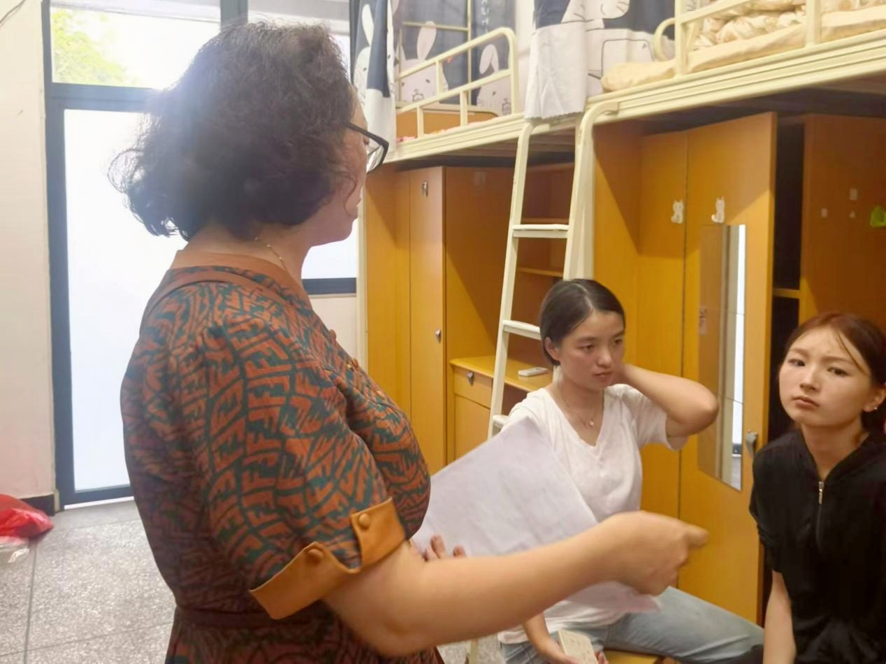 老师们亲切地同新生沟通交流,了解其到校后的相关情况,鼓励新生尽快融入大学环境。针对新生关于学习、生活和校园安全管理等各方面的问题进行一一解答,引导新生提高个人安全意识,自觉遵守寝室管理规章制度,做德智体美劳全面发展的新时代青年。