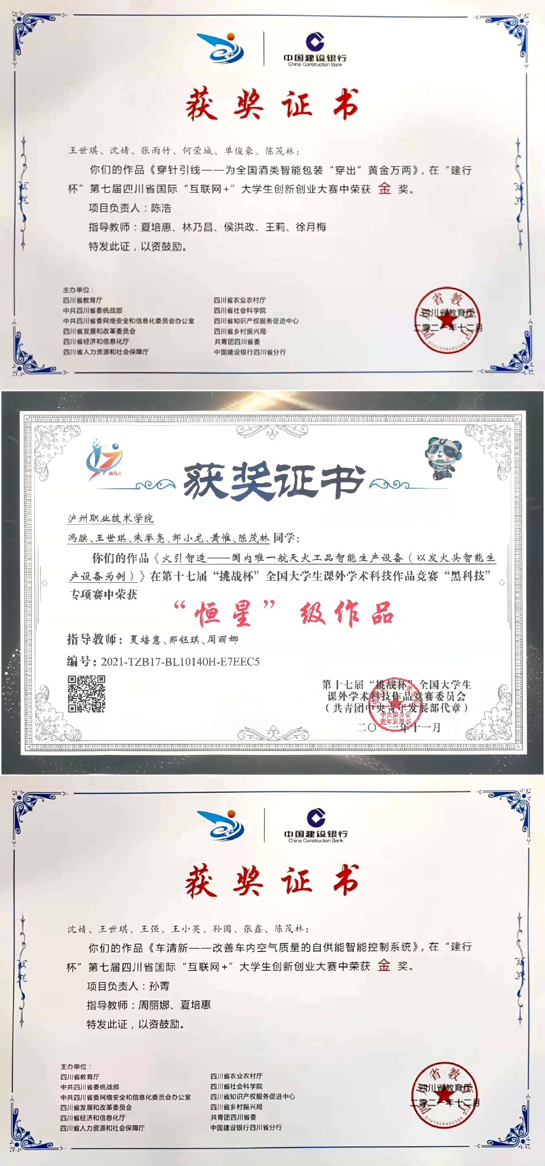2021年5月,代表泸州市参加四川省职业生涯规划大赛荣获“十佳选手”第三名,并受到泸州市褒奖。