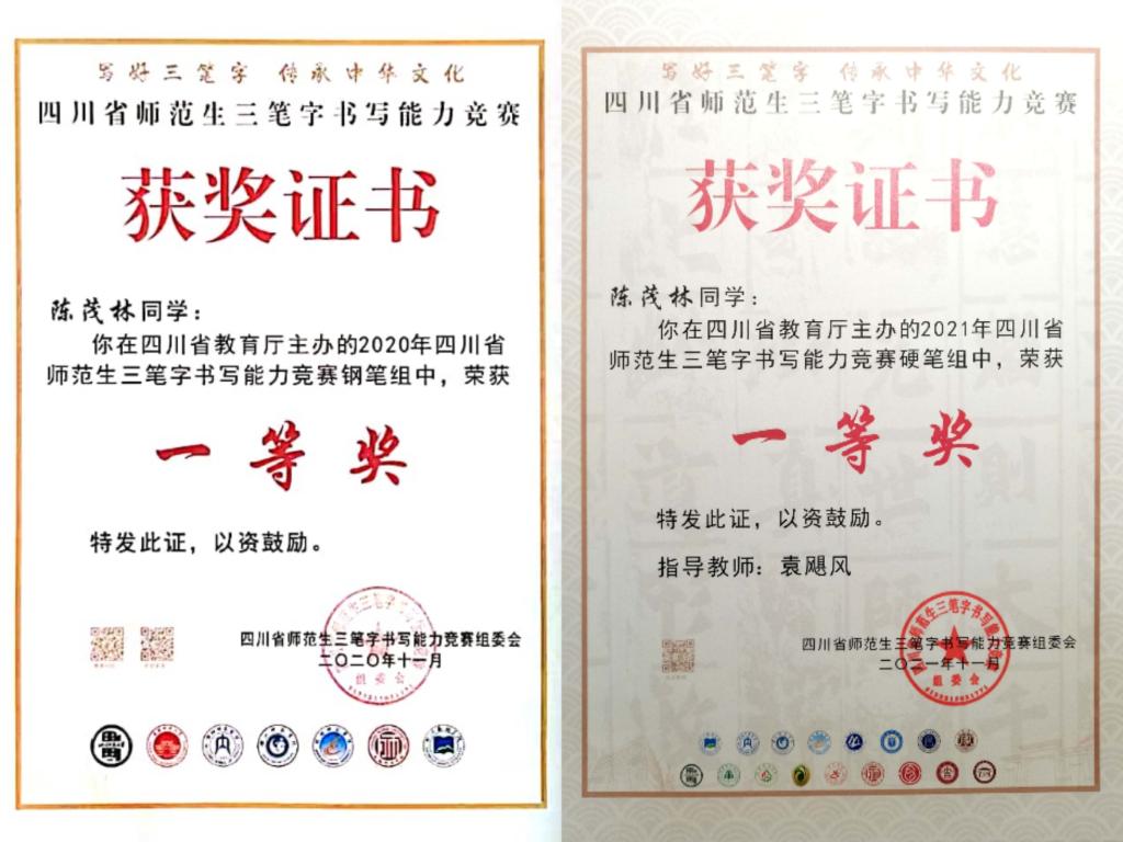2021年10月,参加四川省师范生三笔字大赛荣获一等奖。