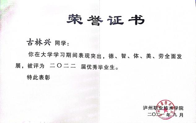 在校期间多次获得公司“代英”奖学金;参加四川省职业技能院校师范生教学能力大赛音乐分赛项中,荣获一等奖;多次参加各级各类志愿服务活动,参加“我们的心永远忠于党”文艺汇演活动,被泸州市退役军人事务局评为优秀志愿者;曾获得“三好员工”、“优秀员工干部”、“优秀共青团干部”、“优秀共青团员”等荣誉称号。